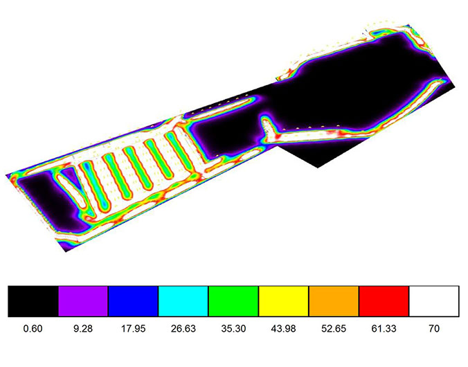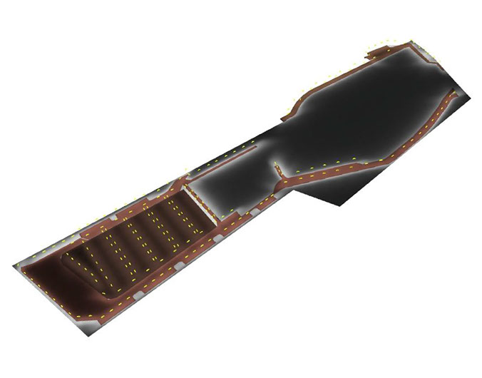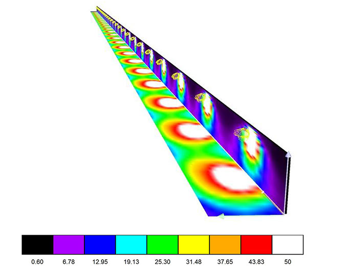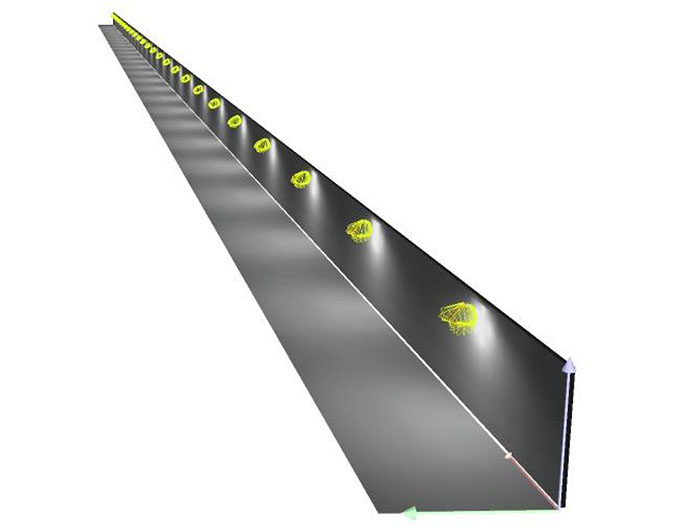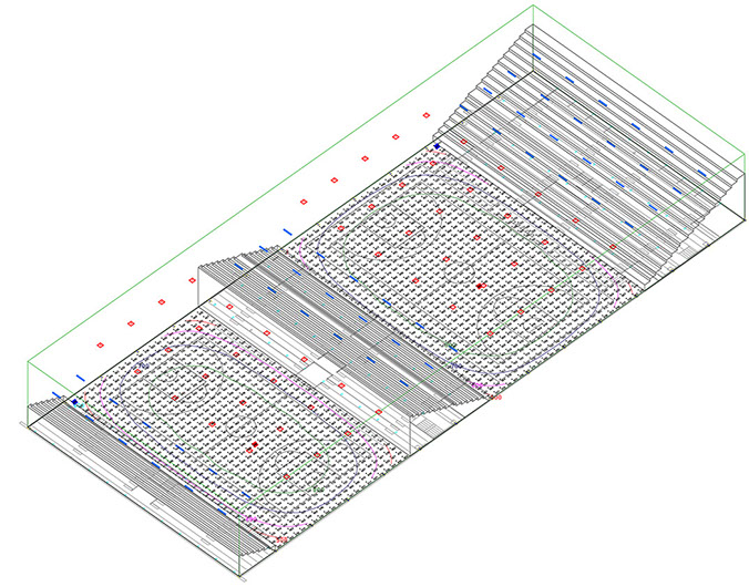 Estudio de iluminación para pista de ejercicios, cumpliendo con los niveles mínimos recomendados por la UNE EN12193, norma que rige la iluminación de instalaciones deportivas.