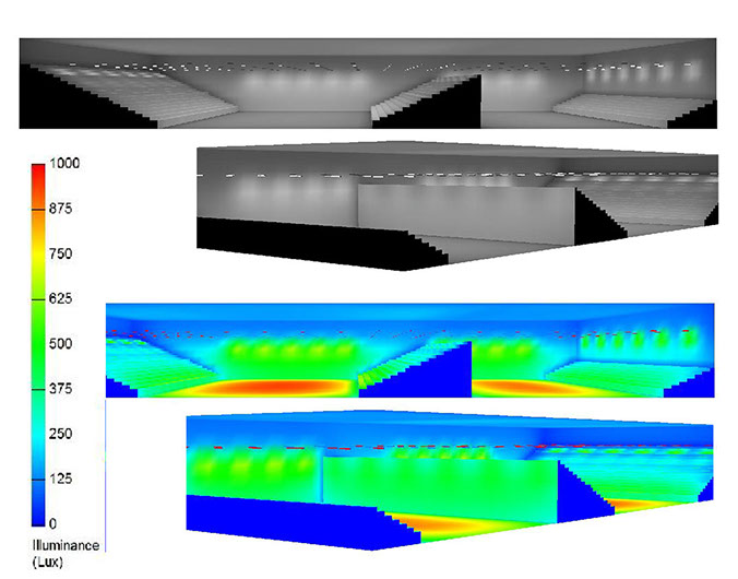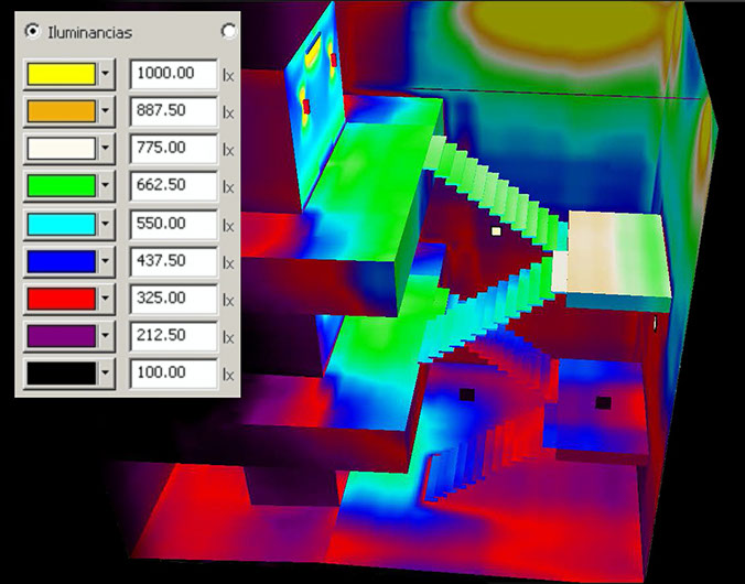 Estudio de iluminación para Polideportivo España, cumpliendo con los niveles mínimos recomendados por la UNE EN12193, norma que rige la iluminación de instalaciones deportivas.