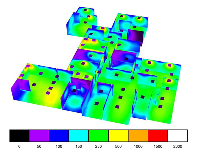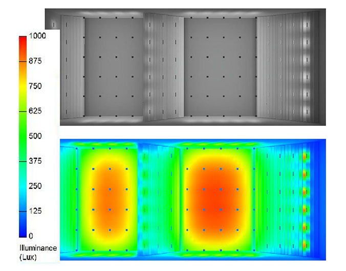 Estudio de iluminación para oficinas de la Empresa Portuaria Nacional, incorporando lámparas óptimas que se adaptaron a cada espacio logrando niveles de iluminación adecuados y con bajo consumo energético